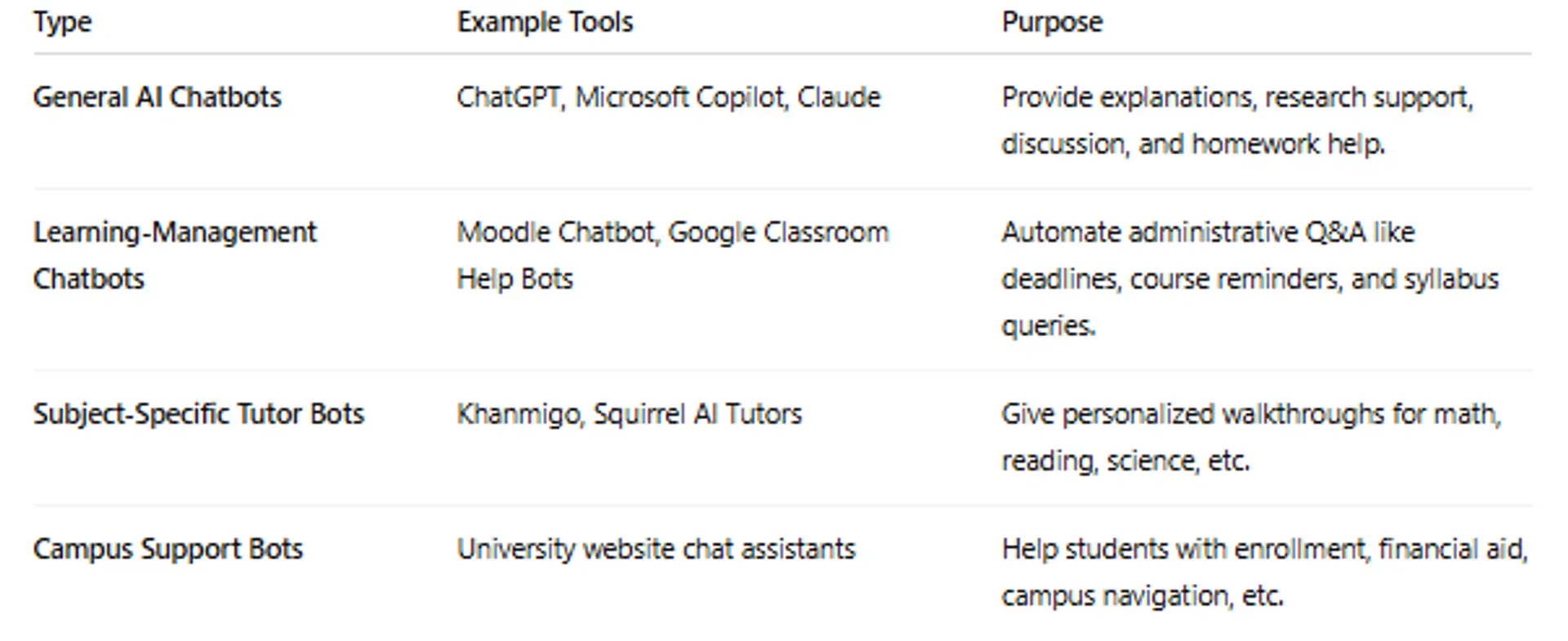 2.Types of AI Chatbots Used in Classrooms