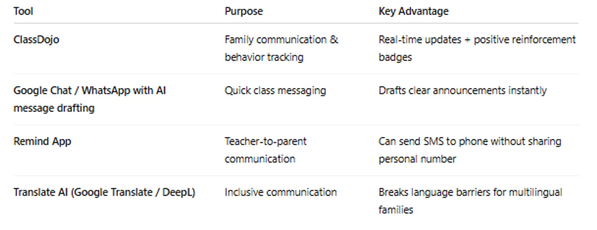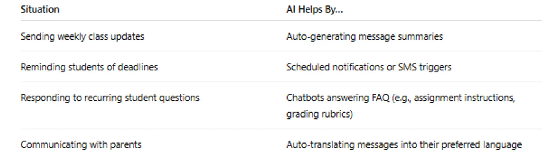 AI improves classroom productivity and communication by reducing administrative burden and enhancing clarity, consistency, and responsiveness. When used effectively, these tools allow teachers to: