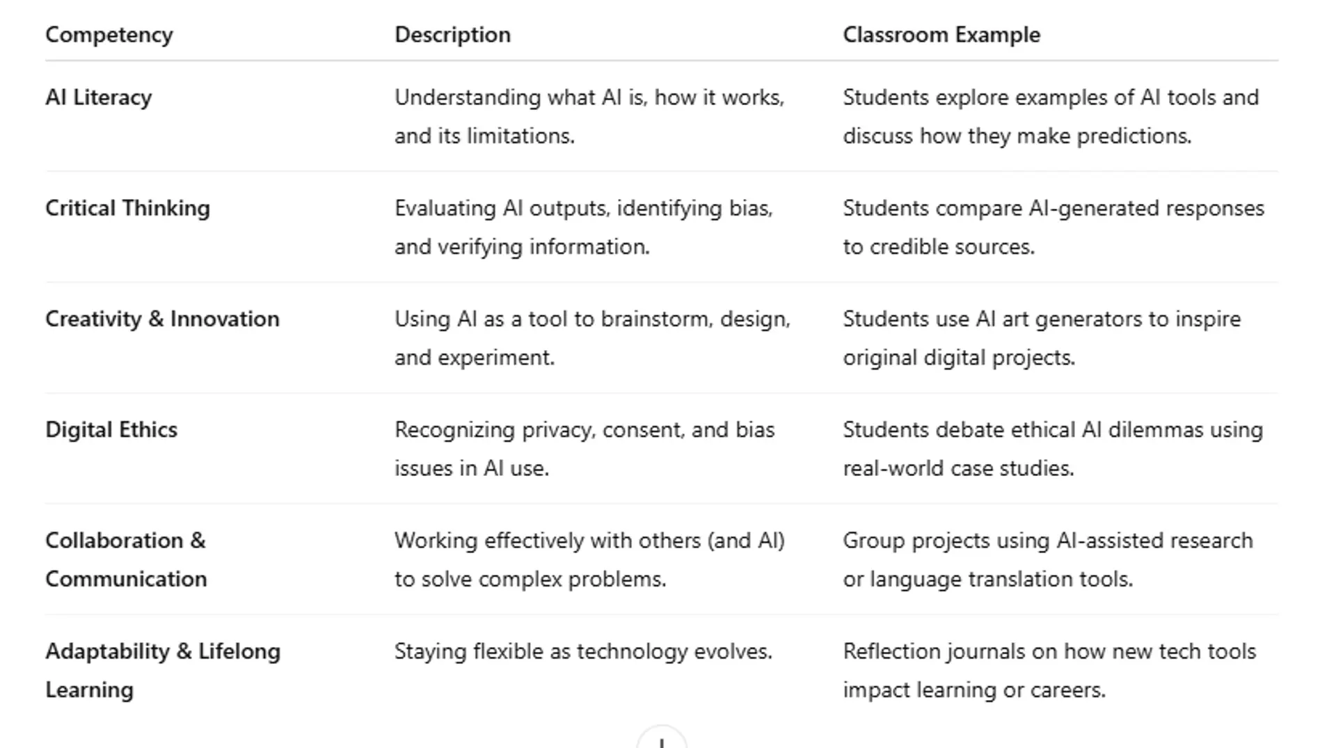 - Integrate AI literacy and critical thinking into classroom instruction.